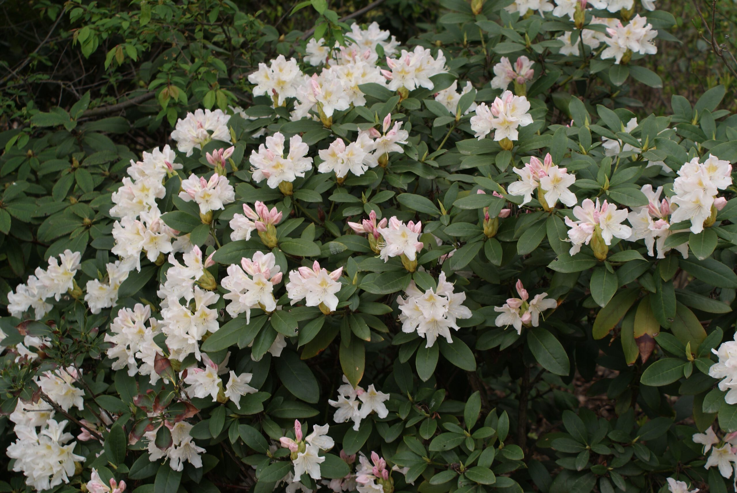 Rhododendron ’Cunningham’s White’ is misschien wel de bekendste witbloeiende rododendron. De bloei, met grote witte bloemen die een bleek geel hart hebben, vindt plaats in de maand mei.